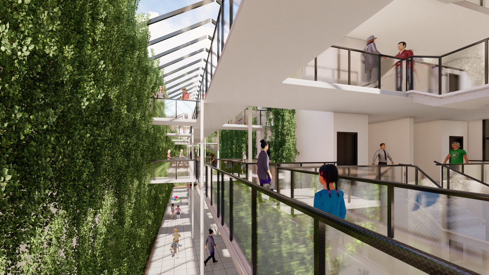 Concept of green inner corridor of public houses