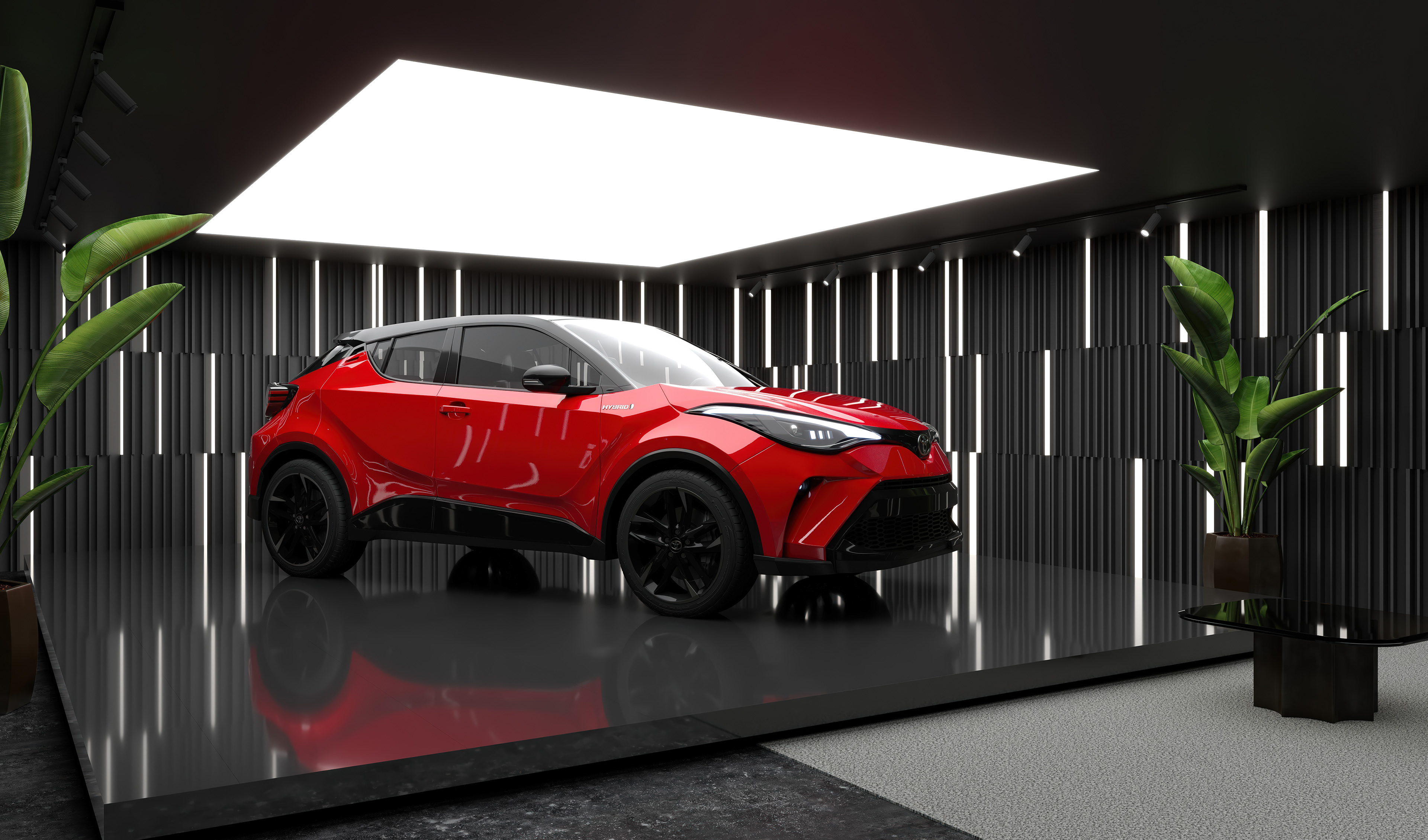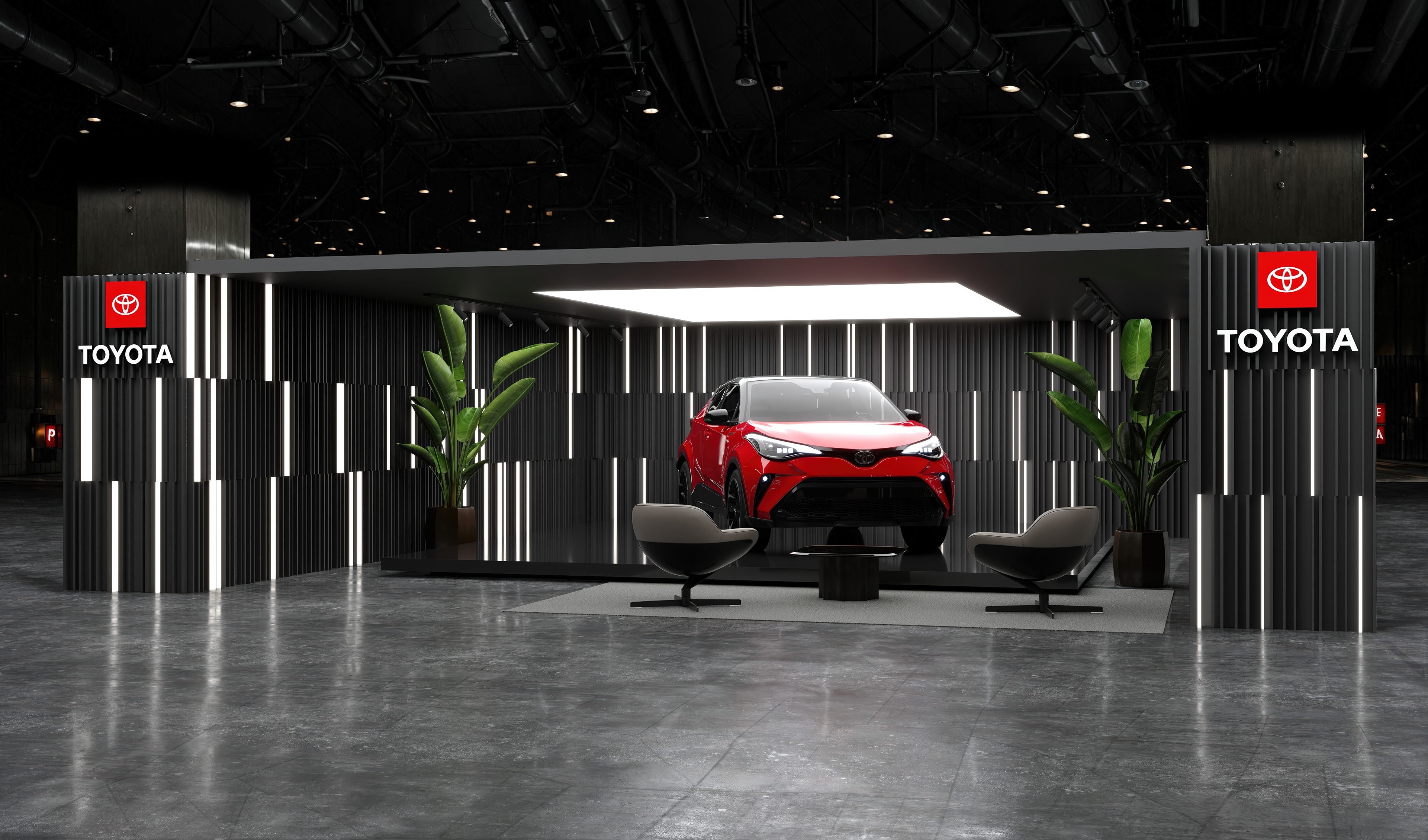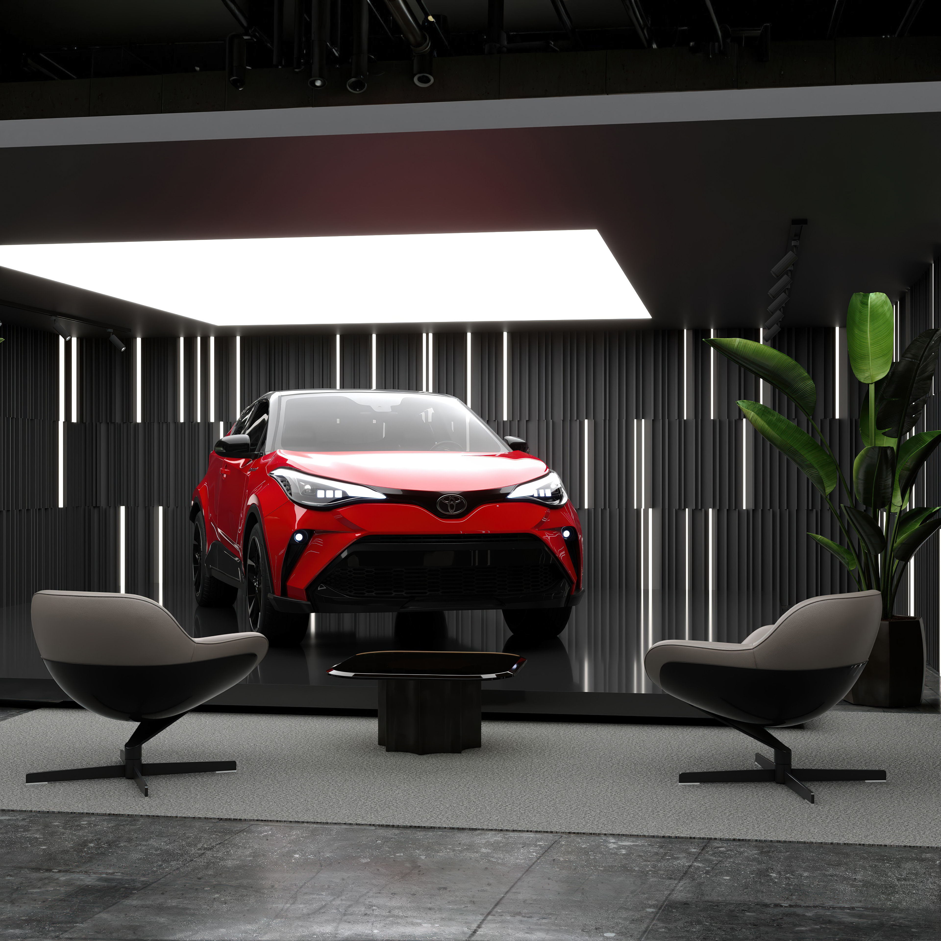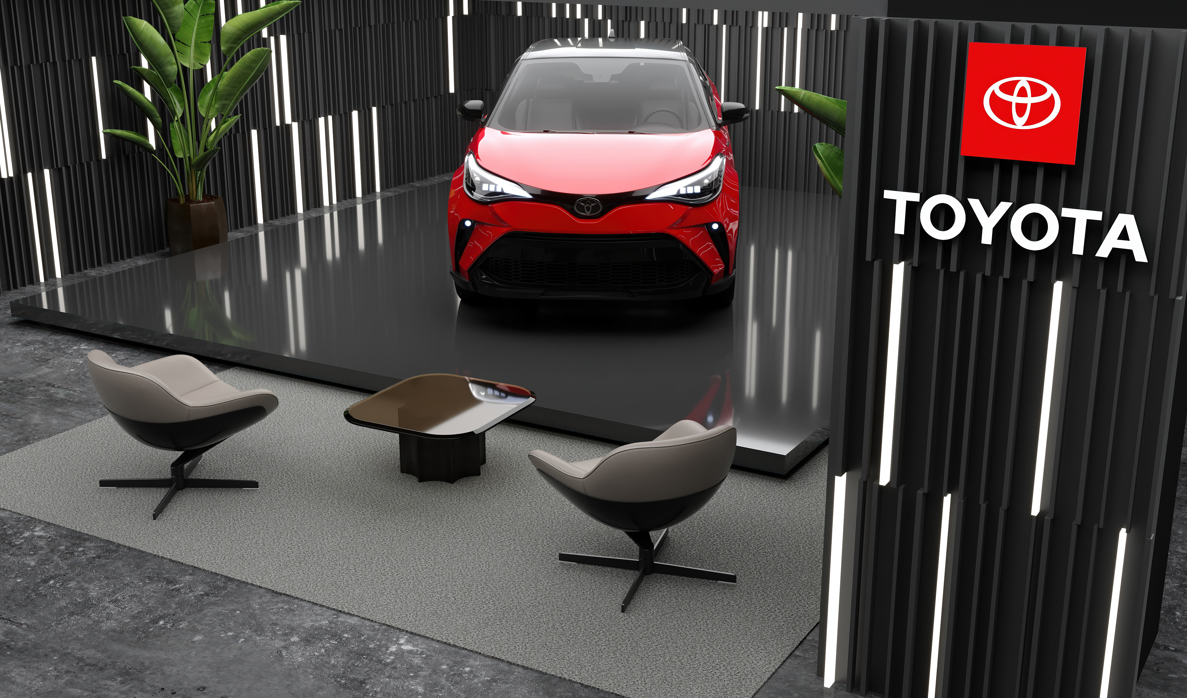 We designed a bold automotive showcase concept for Toyota, transforming an ordinary space into a futuristic exhibition zone.